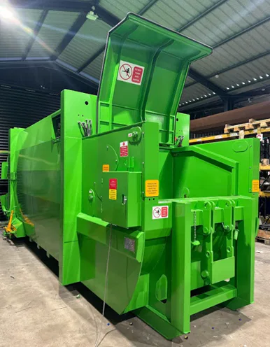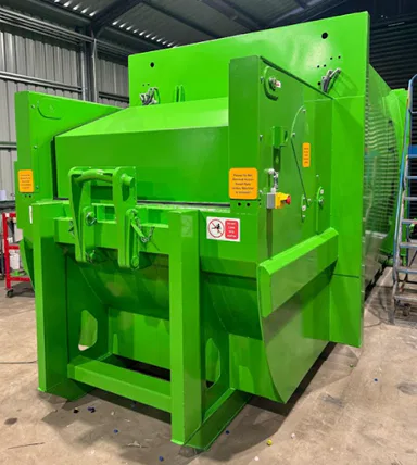 A key feature of the model is its ratchet-type turnbuckle locking device, which ensures a strong and reliable seal when the unit is closed. This helps fully contain waste while still allowing operators to quickly and easily access the machine when needed.