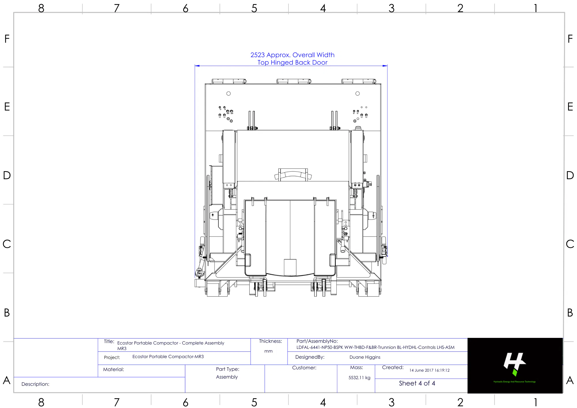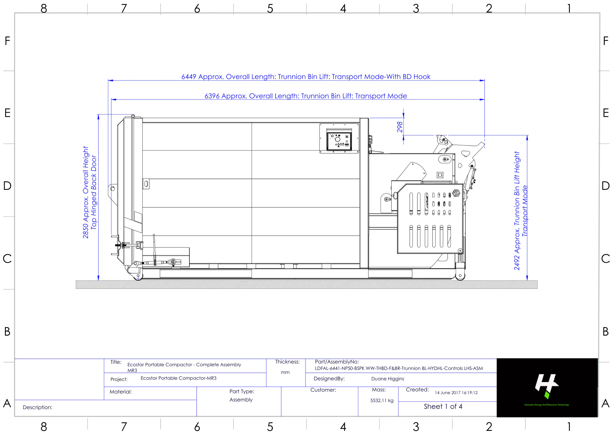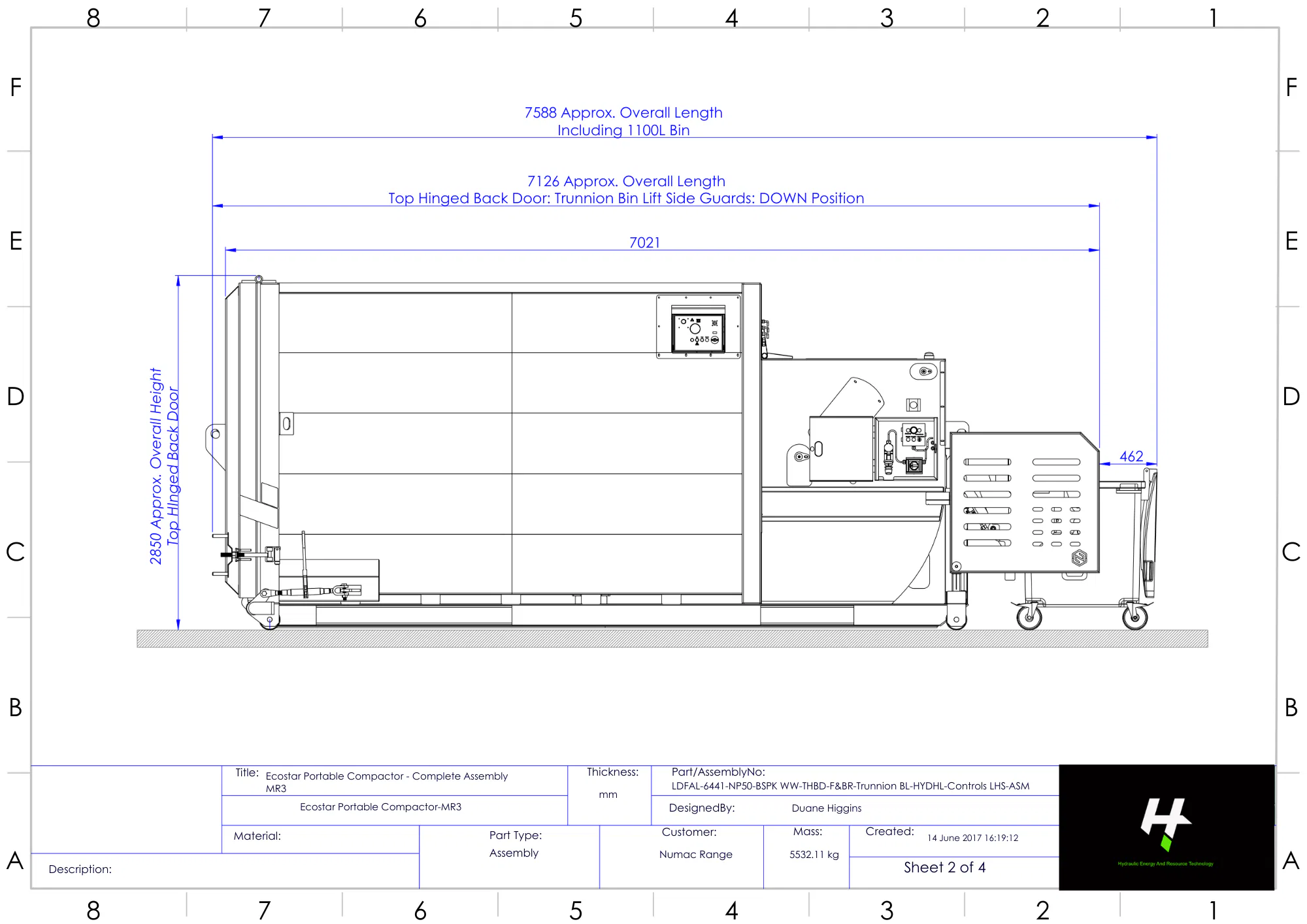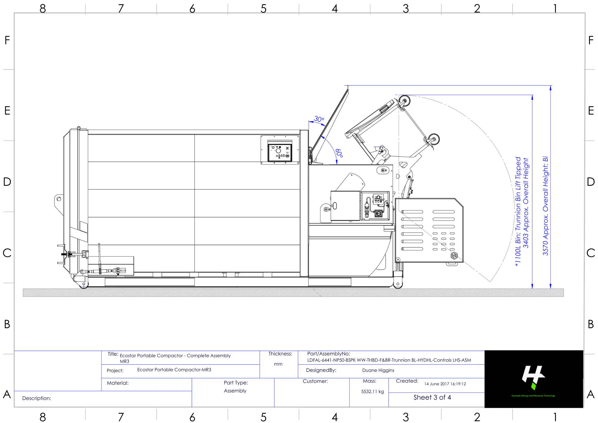 3658 mm Overall Height (Hydraulic Lid & 1100L Bin Tipped)