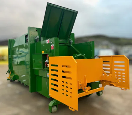 The Poseidon Wet Waste Portable Compactor with WW Trunnion Bin Lift is a robust and high-capacity waste management solution designed specifically for handling wet and food waste. Combining compaction and storage within a single sealed unit, it helps reduce waste volume while maintaining excellent hygiene standards across your site.