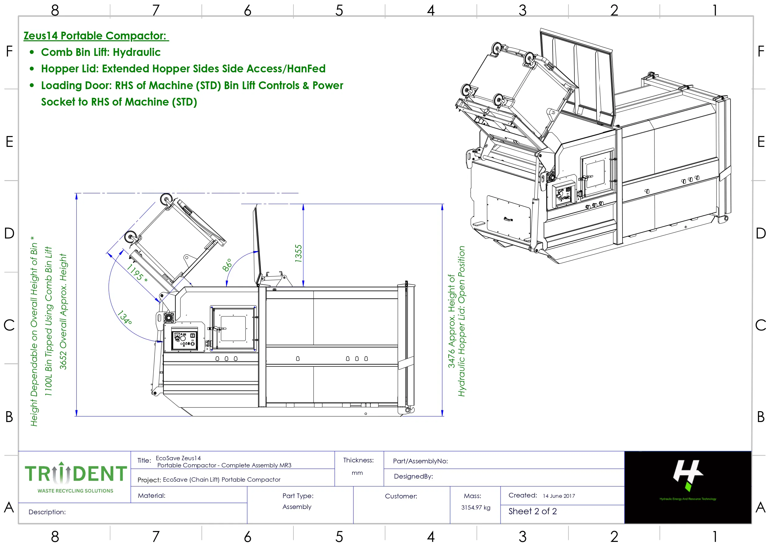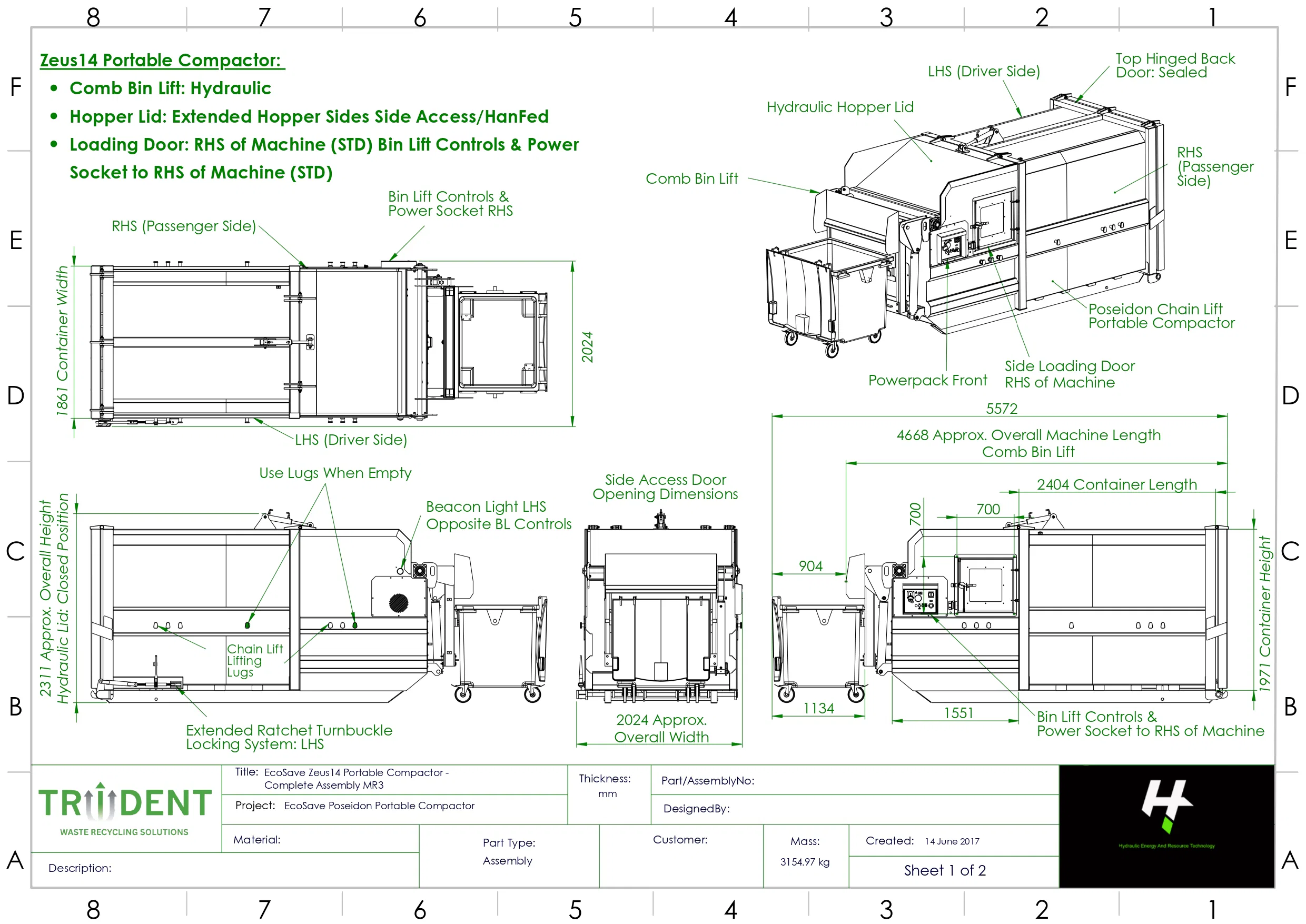The Zeus14 Portable Compactor with Hand-Fed Hopper (Front Loading) is a compact and practical waste solution designed for sites where space is limited but efficient waste handling is essential. Its front-loading, hand-fed hopper allows for easy and controlled waste input, making it ideal for day-to-day use in busy environments.