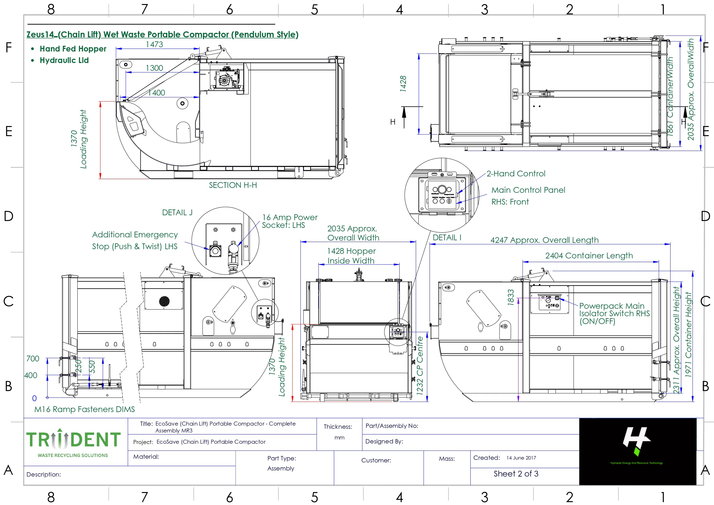 The Zeus14 Wet Waste Portable Compactor with Hand-Fed Front Loading and Hydraulic Lid is a robust and space-efficient solution designed specifically for handling wet and food waste in demanding environments. Combining compaction and storage in a single sealed unit, it helps maintain high levels of hygiene while reducing waste volume and improving overall site efficiency.