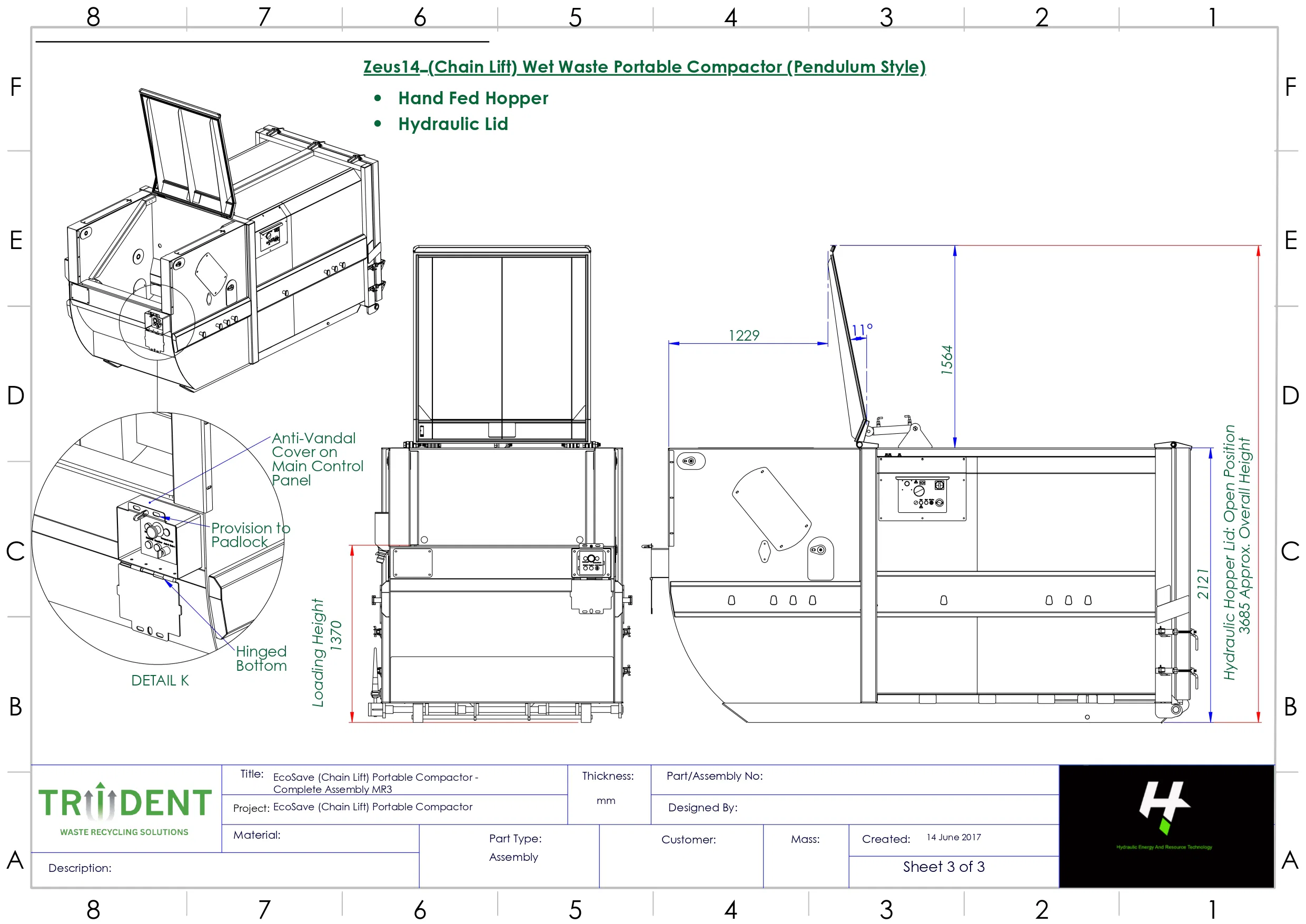 Product SKU: The Zeus14: Hand Fed-Hydraulic Lid