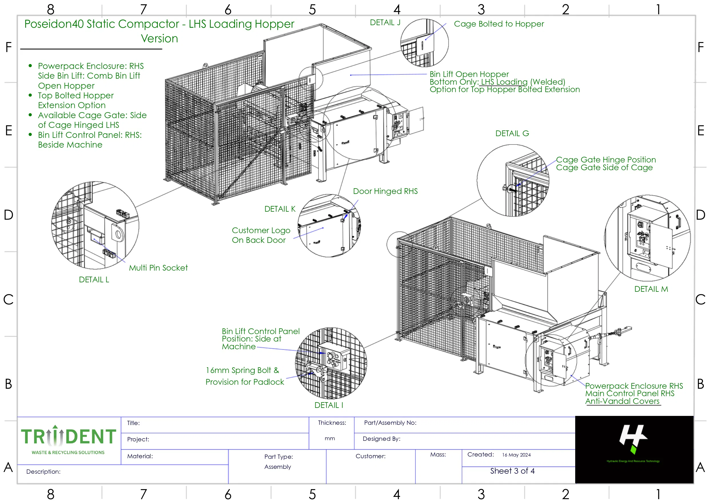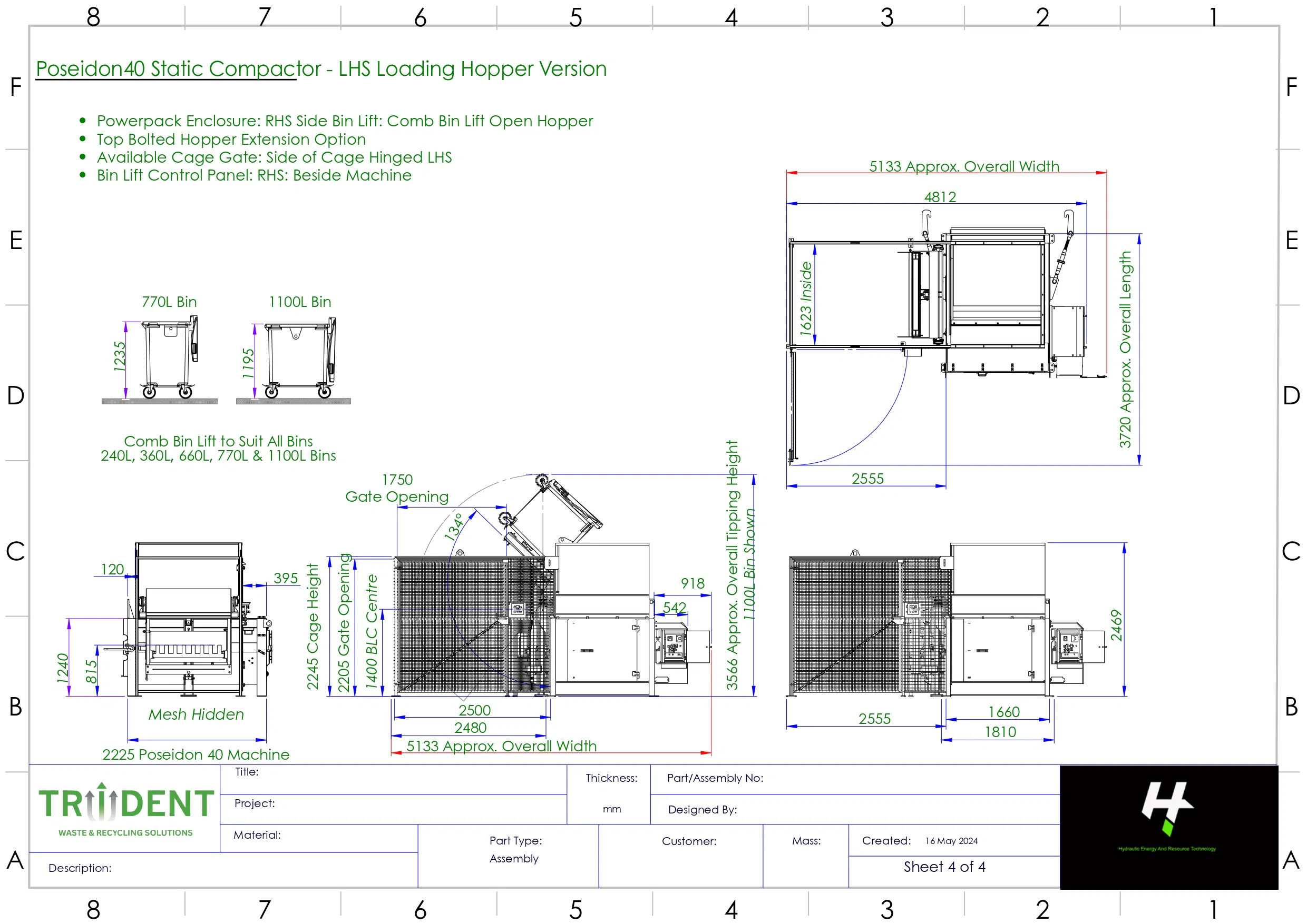 The Zeus40: Side Comb Bin-Lift is a robust and efficient waste solution designed for handling large volumes of commercial and medium-density industrial waste. Its side-mounted comb bin lift allows for safe and convenient loading in a variety of site layouts.